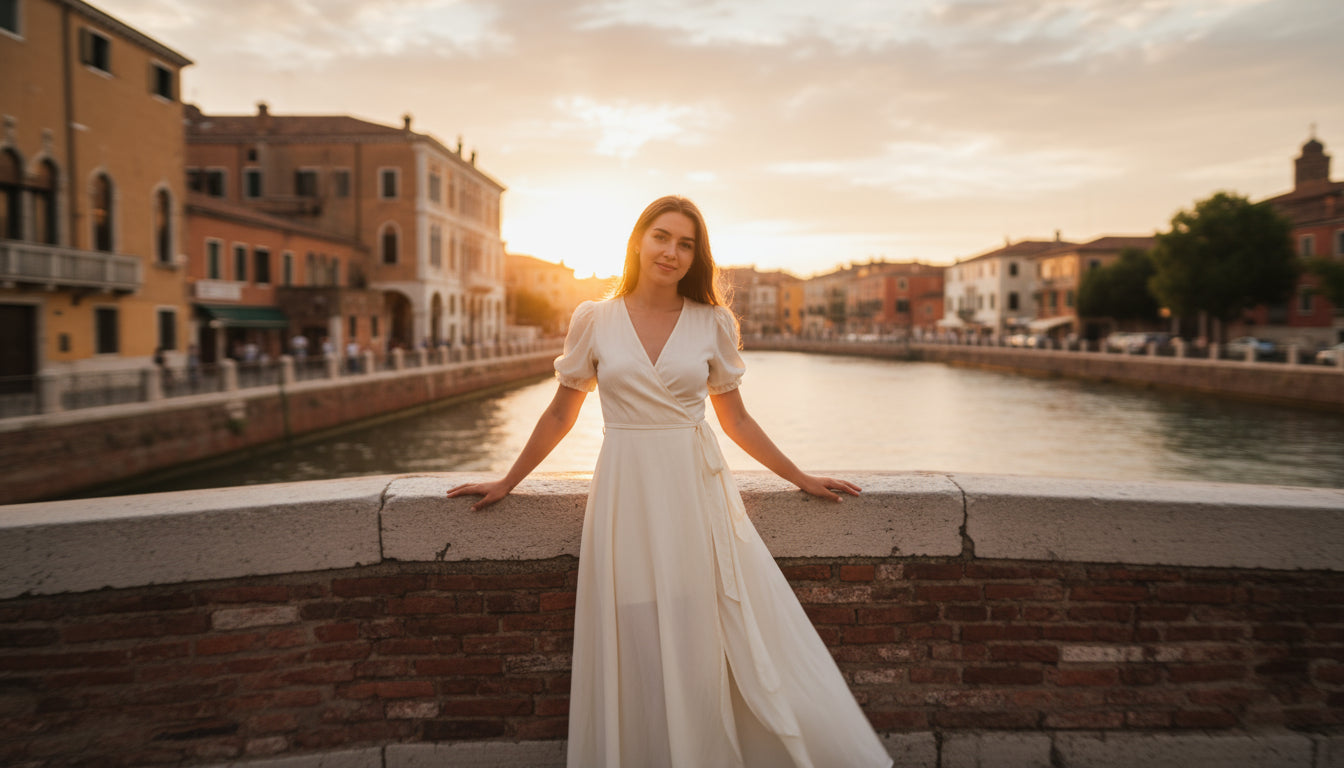 Beżowa sukienka koszulowa z rękawami o długości do połowy łydki i paskiem do wiązania